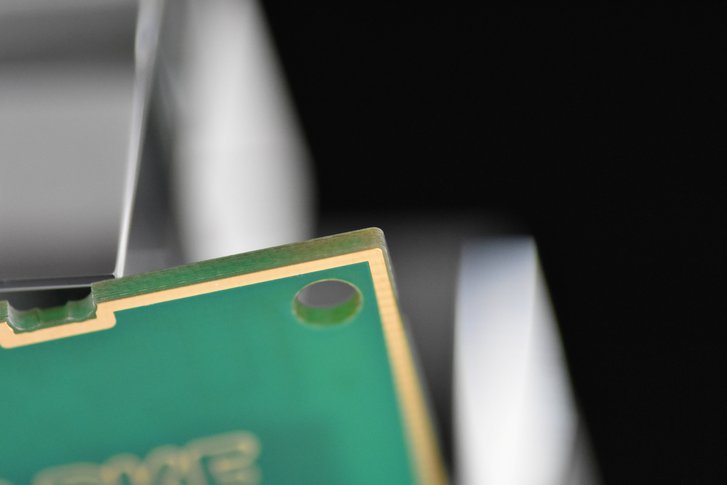 几微米的激光束光斑直径,非常适合应对沟道极窄,曲度极小的切割需求,表面贴有元器件,电路板拼板更密。